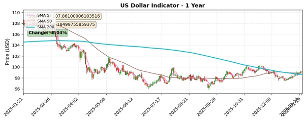 - SMA(5, 50, 200일) 모두 98.6~98.9 구간, 현재 가격과 근접해 단기 강세 신호 일부 확인
