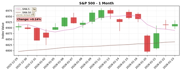 S&P 500은 최근 1년간 15.02% 상승하며 안정적인 상승 추세를 유지하고 있습니다. 단기 및 중기 이동평균선이 장기 이동평균선 위에 위치해 긍정적인 모멘텀을 시사합니다. RSI(14) 55.7, 200일 괴리율 8.27%로 중립권에 있어 과매수 신호는 없습니다. 변동성은 다소 높으나 상승 추세에 부합합니다.