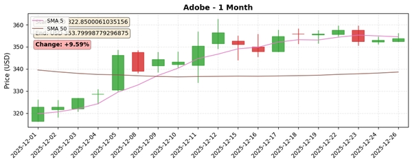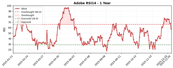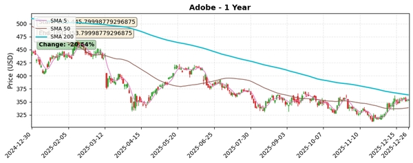 종합적으로 Adobe 주식은 단기적으로는 상승 모멘텀을 보이나, 중장기적으로는 조정 국면에 있으며, 기술적 지표와 밸류에이션 측면에서 저평가 상태로 판단됩니다. 투자자는 단기 반등과 중장기 추세 변화를 주의 깊게 관찰할 필요가 있습니다.