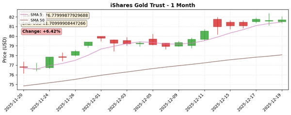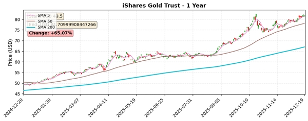 종합적으로, iShares Gold Trust는 최근 1년간 강한 상승 추세를 보이며 투자자들에게 긍정적인 신호를 주고 있습니다. 단기 변동성은 낮은 편이나, 장기적으로는 변동성이 커져 투자 시 리스크 관리가 필요합니다. 가격 상승과 함께 주요 고점과 저점이 상승하는 모습은 강한 매수세와 시장 신뢰를 반영합니다.