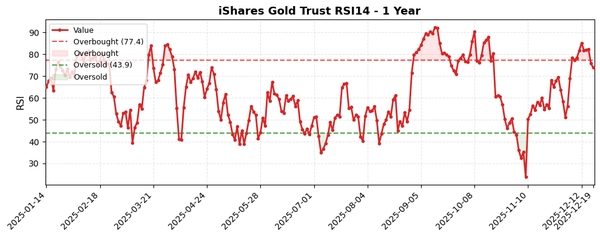 - RSI(14)는 73.87로 71.6% 랭크에 위치해 상승 모멘텀이 강한 상태이나 과매수 임계치(77.4)에는 아직 도달하지 않았습니다.